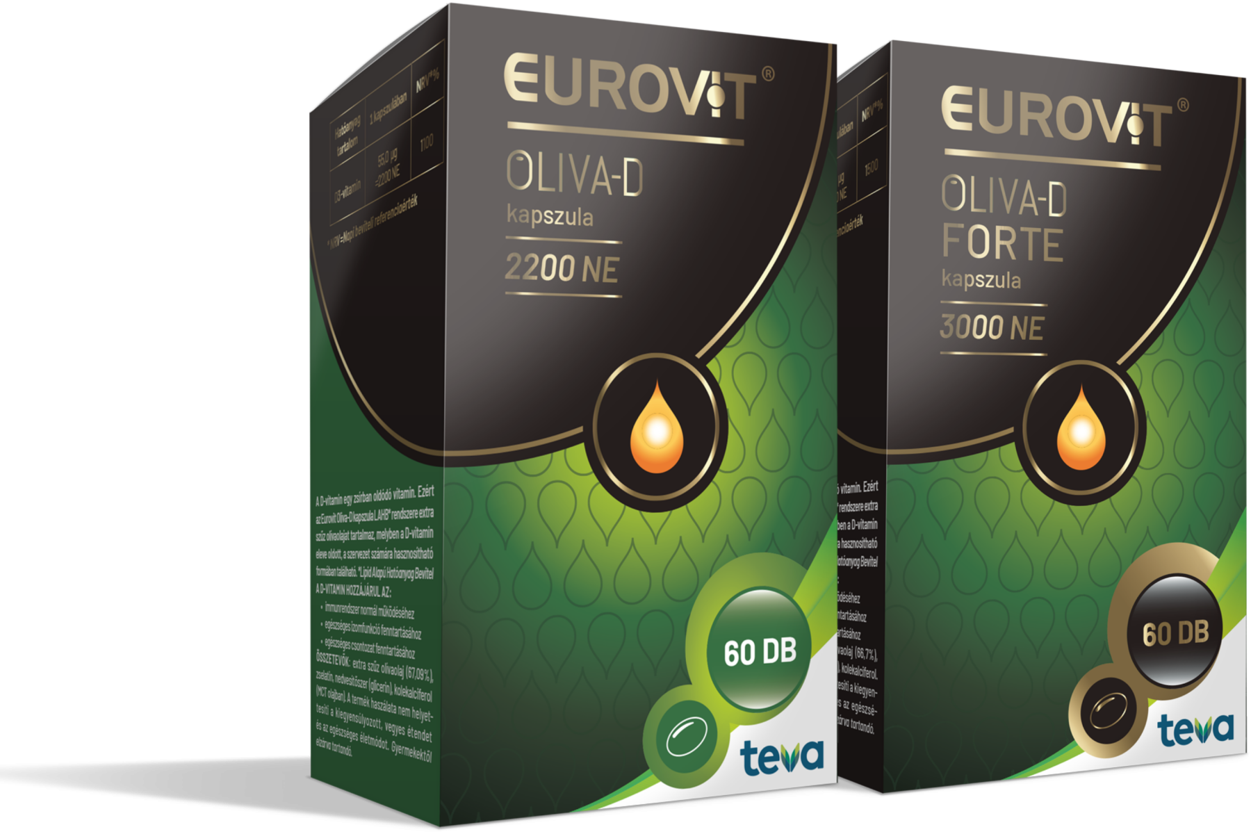Eurovit Oliva-D Forte 3000 NE kapszula D-vitamin extra szűz olívaolajban étrend-kiegészítő. Eurovit Oliva-D 2200 NE kapszula D-vitamin extra szűz olívaolajban étrend-kiegészítő. Eurovit D-vitamin Forte 3000 NE tabletta étrend-kiegészítő. Eurovit D-vitamin 2000 NE tabletta étrend-kiegészítő.
