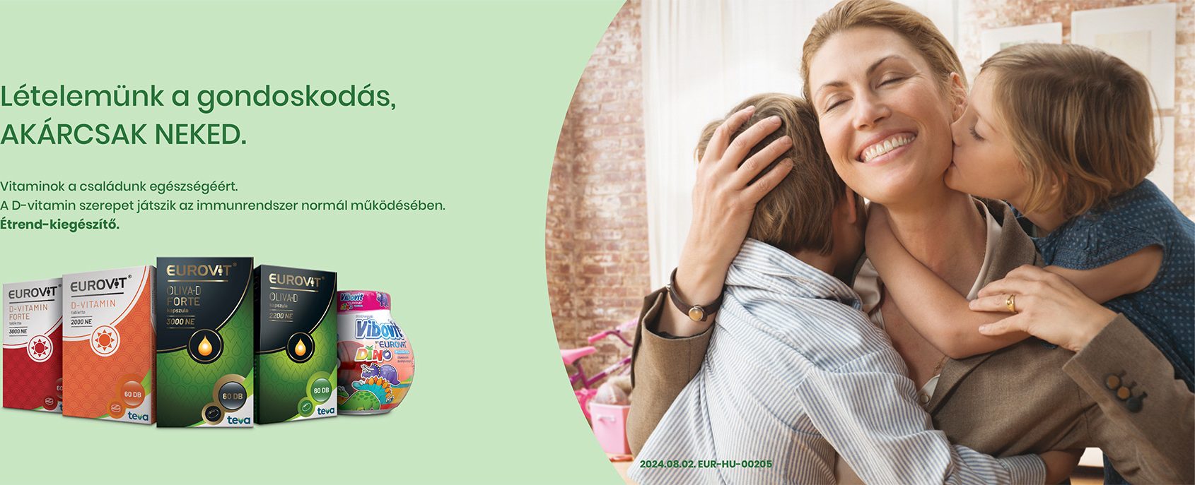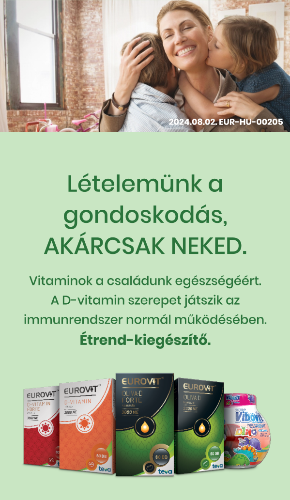 Az étrend-kiegészítő használata nem helyettesíti a kiegyensúlyozott, vegyes étrendet és az egészséges életmódot. Forgalmazza: Teva Gyógyszergyár Zrt., 4042 Debrecen, Pallagi út 13. Lezárás dátuma: 2025.03.31.; EUR-HU-00210